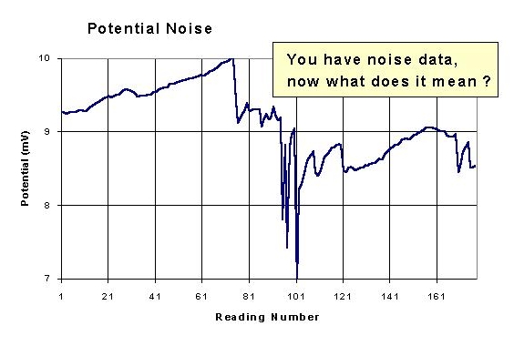 لا تزال نظرية الفوضى في مراحلها الأولي في القياسات تآكل / الرصد ويمثل نهجا بديلا للنماذج التقليدية لعمليات التآكل. فمن الملاحظات التالية التي أدلى بها سردار وابرامز في النص الاستهلالي “تقديم الفوضى” يعطي نكهة لهذا العلم الرائع. وقد تقدمت مؤخرا في هذا المضماربطريقه حديثه في القدرة الحاسوبية قضية نظرية الفوضى. وتتعامل هذه النظريه مع ظواهر الفوضى الحيوية ومن الأمور ذات الصلة لهذا التغيير. وهي تمثل العلاقة بين البساطة والتعقيد ، وبين الترتيب والعشوائية. كما انها ليست في صراع مع القوانين الفيزيائية الأساسية ولكن يظهر القدرة على الفوضى والتعقيد وعدم القدرة على التنبؤ. ويمثل ذلك إمكانية تبسيط الظواهر المعقدة في الخلايا الكهروكيميائيه ومدخلها هو الضجيج الكهروكيميائي ويلقي ذلك ظلالا من الشك على النهج التقليدي العلمية بناء النماذج الحديثه ويمكن أن يحدث تغييرا هائلا في طريقة نظرتنا إلى العالم الطبيعي وأنفسنا. ففي تحليل الضجيج الكهروكيميائية الذي تم اتباع نهج عديدة في معالجة وتحليل اشارات كهربائية الضوضاء ولها منهجيات جديدة من الإشارة مجال تحليل تستمر في الظهور. تحليل اشارات حيوية في سلاسل زمنية هو حقل البحث على نطاق واسع. وهو معروف في حقل هندسة البرمجيات كحزمة متطورة كان لها جذورها في تحليل (ومحاولة التنبؤ) تقلبات أسعار الأسهم . وقد حاولنا في دراسات مختلفه التطرق الي منهجيات دعت إلى إشارات كهربائية الضوضاء وتشمل دراسة “الخام” البيانات (مع أو بدون تصفية) ، التحليل الإحصائي ، ونطاق التردد تحول ، ونظرية الفوضى ، وتحليل المويجات والشبكات العصبية. وكلها اتت بتفسيرات مهمه تم ادراجها فى وثائق علميه. إلا أن فحص خامة المعلومات والبيانات: يمكن أن يكون من الممكن تحديد آليات مختلفة للتآكل والصدأ من خلال البيانات والمتغيرات في السلوك العام من “البيانات الخام للضجيج الكهروكيميائي”. ويمكن تصفيتة من الانجراف ما يؤدي الي قيمه منخفضة جدا لها مكوناتها من تردد الأطياف الضوضائيه وقد تكون مفيدة. يمكن أن تؤثر على تصفية “نظرة” من البيانات الضجيج بشكل كبير يمكن أن يكون له مظهر تختلف اختلافا كبيرا تبعا لتطبيق تقنيات الترشيح. ويمكن انتقاد هذا النهج من حيث الموضوعية وطبيعتها وصفي ، والافتقار إلى الأتمتة. كما ان التحليل الإحصائي ويمكن تطبيق التقنيات الإحصائية لتحديد البيانات من الضوضاء ، من حيث المعايير الإحصائية. تعارض وجهات النظر لا تزال تظهر في الوجود ما إذا كان هناك بعض الاشارات الضوضاء العشوائية ، القطعية أو مزيج من الاثنين. في الميدان العام لتحليل الإشارات وتعتمد ازدواجية الوقت مكونات العشوائية والقطعية وقد لوحظ في سلسلة زمنية معينة. فمن ميزات العشوائية يعني عشوائي ، والطبيعة لا يمكن التنبؤ بها ، في حين أن عمليات القطعية ويمكن التنبؤ به. والمعلومات الاحصائية المستخدمة في تحليل الضوضاء تشمل الانحراف ، والمعياريه ، و الإلتواء ، ومؤشر التفرطح الترجمة. ومن الواضح أنه من المهم النظر في التوزيع المناسب في التحليل الإحصائي. قد يكون التحليل الإحصائي شاقة وتتطلب الحوسبة واسعة النطاق ، كما هو عادة تحليل البيانات الضوضاء على دفعات. اما في مجال التردد هذه التقنيات تحويل البيانات من الضوضاء سلسلة زمنية (نطاق الوقت) في نطاق التردد. تحول فورييه السريع (الغذاء مقابل التدريب ، والمعروف أيضا) والحد الأقصى لالانتروبيا الأسلوب (الفنزويلية ، وقد طبقت أقل شهرة) لهذه الأغراض. وقد اقترح أن المنحدر الأسماء الخروج من أطياف الترددات الناجمة يمكن أن تعطي مؤشرا على آلية التآكل ونشرها في مقابل سيطرة التنشيط. وتشارك مرة أخرى العمليات الدفعية في هذا النهج.